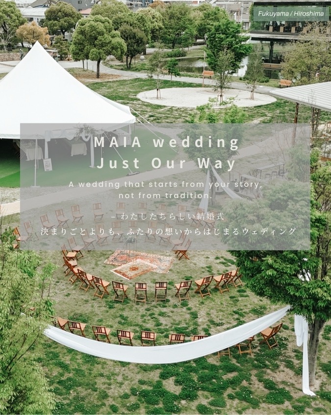 結婚が決まったとき、まず頭に浮かぶのは「どんな姿で写真を残したいか」ということ。大切な日を特別な写真にするなら、フォトウェディングという選択肢があります。 福山市の中央公園に隣接する MAIA wedding では、スタジオ撮影だけでなく、緑あふれるガ... -