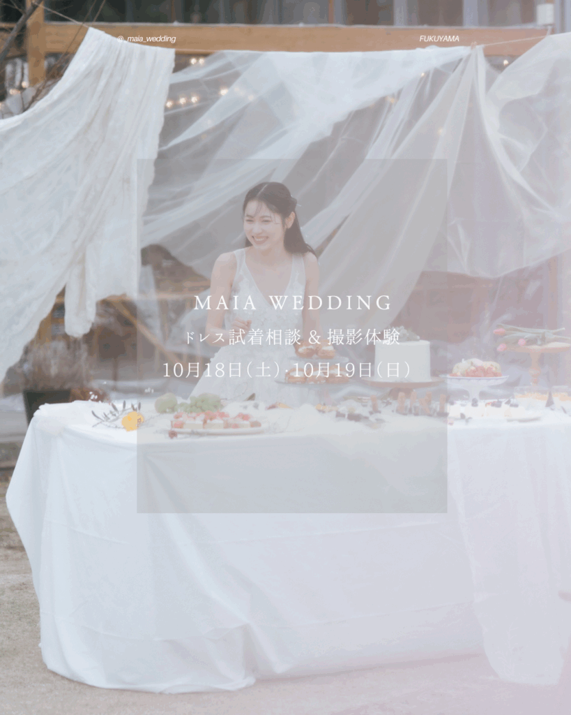 結婚式の準備を始めたばかりのとき、こんな思いを抱いたことはありませんか?「自分に似合うドレスがわからない」「フォトウェディングって実際はどんな雰囲気なんだろう」 そんな気持ちに寄り添うように、福山市の MAIA wedding が毎月開催しているのが、... -